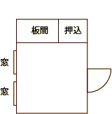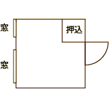学生寮山さきの全体見取図と、それぞれのタイプの部屋の一例です。 ※ベ印の部屋はベッド付きです。 部屋の空き状況などはお問い合わせ下さい。